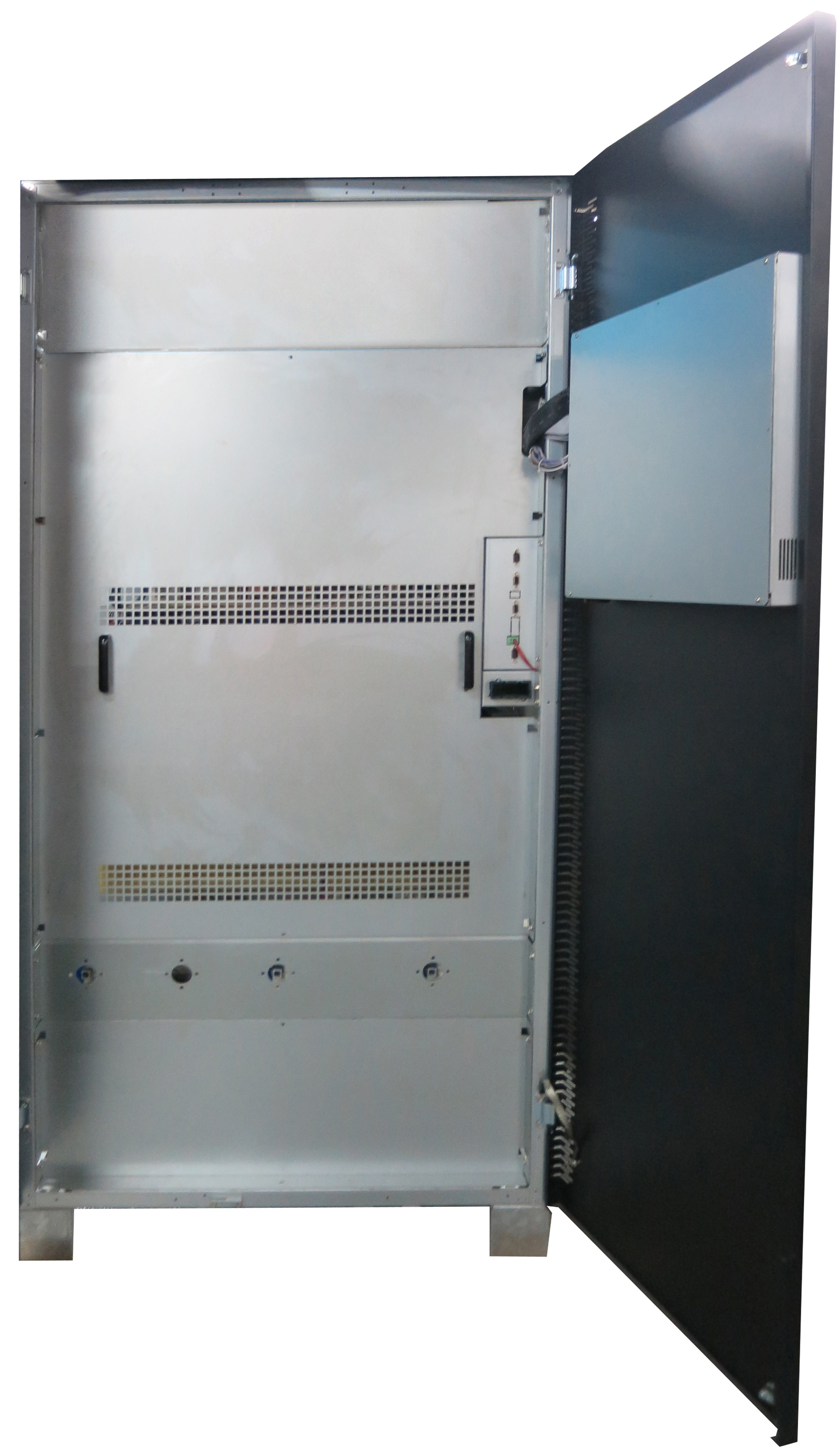 PowerWalker VFI CPT 3/3 series can operate in parallel with maximum 4 units. Fourth generation IGBT transistors helped to achieve high efficiency up to 95% minimising heat losses and prolonging life of the device. The UPS has high flexibility in adapting to input and outputs and may serve as single- or three-phase output, both in combination with single- or threephase input! It can work as 1-to-3 phase. The UPS has provided the following standard communication selections: relay interface, RS-232/485 port, SNMP port, Modbus RTU / SEC protocol, 2 connectors for parallel work. The unit is designed to work with external batteries operating on two halfstrings of 31 batteries each. Equipped with strong charger it guarantees reliable and efficient recovery after mains failure.